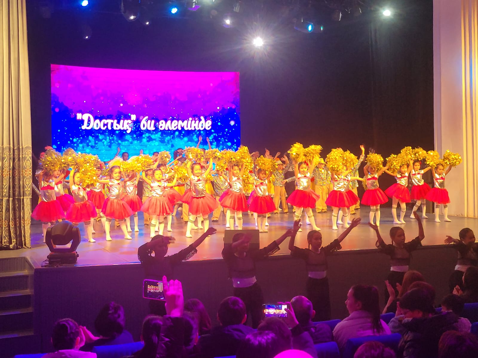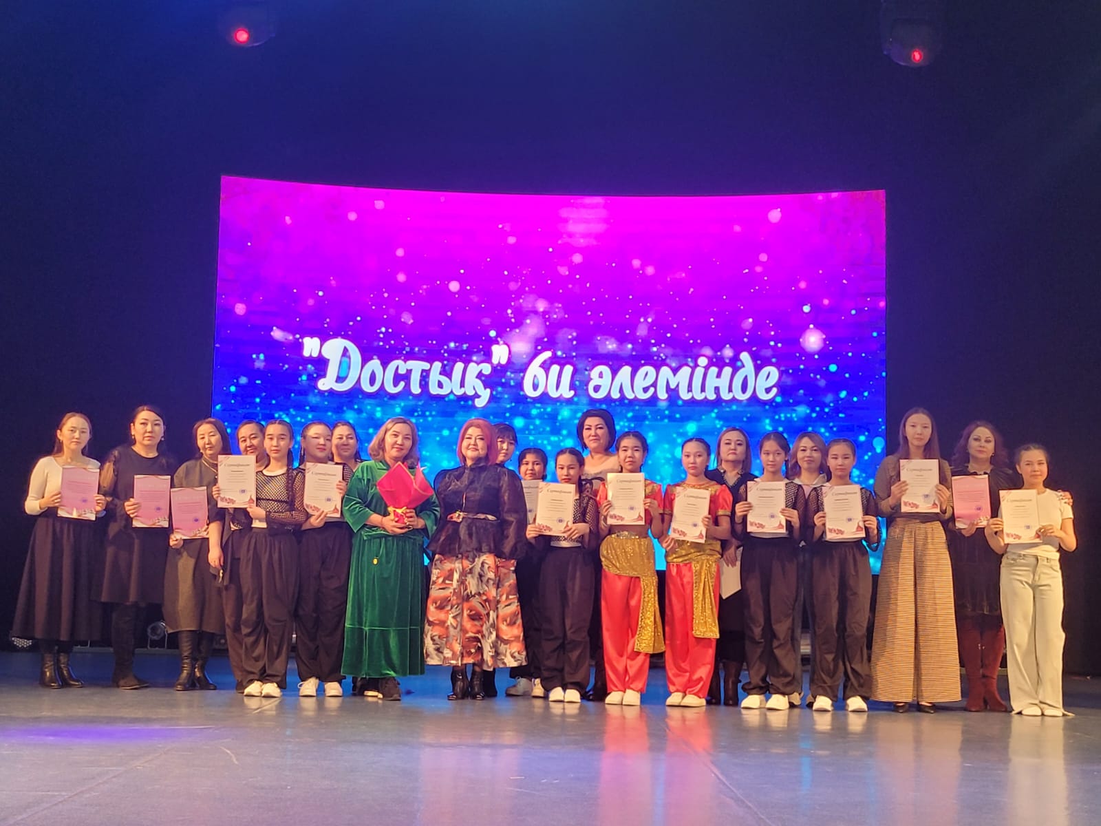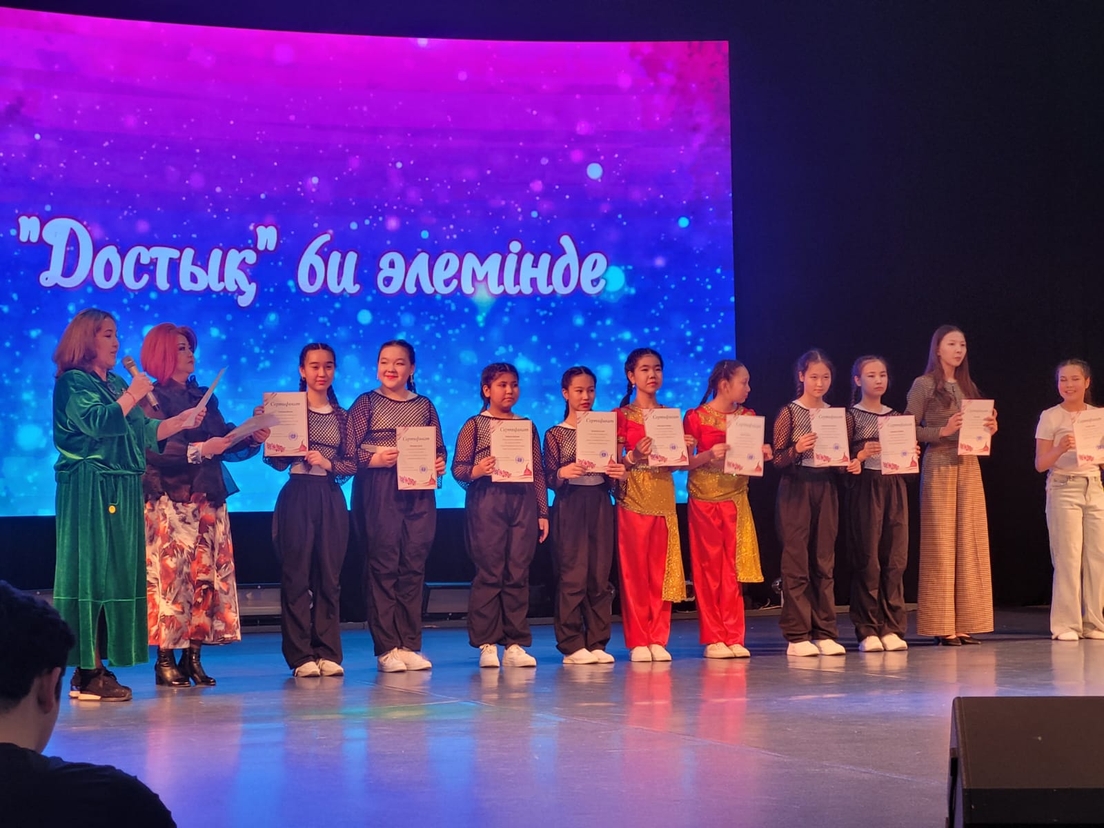 Біздің "Достық" би ансамблінің "Достық" би әлемінде атты есеп беру концерті өтті. 5 жыл толық қатысып, курс аяқтаған оқушыларға арнайы сертификаттармен, ата-аналары алғыс хатпен марапатталды. Осы үйірменің ата-аналары концертке қатысып, балаларының өнерін тамашалады. Концерт өте жоғары дәрежеде өтті. Жас бишілер әртүрлі ұлттардың билерін өте жақсы орындап шықты. Үйірме жетекшісі Баякенова Р.Б. жас таланттарды дайындауда қажырлы еңбек етіп, нәтижесін осы концертте көрсетті.